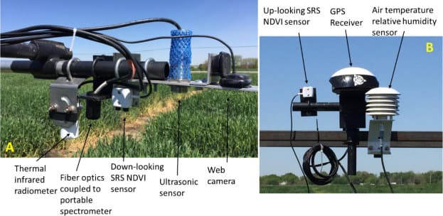 Apogee Instruments 的 SI-131 紅外輻射計(參考文獻中稱為熱紅外輻射計,TIR)被選為大豆和小麥育種多傳感器高通量田間表型分析系統(tǒng)的一部分。紅外輻射計用于收集冠層溫度,這是正在研究的六種基于作物冠層傳感器的性狀之一。研究了溫度以及其余五個基于傳感器的特征:冠層高度、兩個 NDVI 指數、反射率和 RGB,以找到與最終產量的相關性。