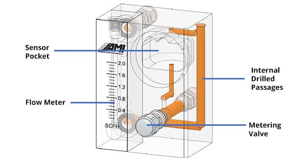 細(xì)胞消除器塊 | 包含完整的樣品系統(tǒng),其所有組件均完全集成,包括流量控制閥、流量計(jì)、樣品閥、量程閥和密封電磁閥 |