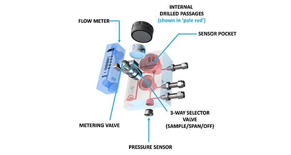細胞消除器塊 | 包含完整的采樣系統(tǒng)及所有組件,包括流量計、計量閥、壓力傳感器和三通選擇(采樣/量程/關閉)閥,完全集成 | |