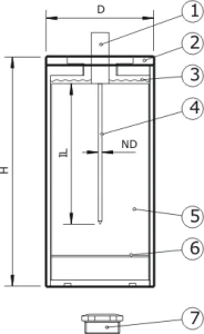 塑料材料結(jié)合在金屬保護(hù)套(2)中。提供了一種用于密封目的的塞子(7)。為了針(1)和參考材料(5)之間的接觸,金屬外殼填充有流體甘油(3)。提供了額外的孔(6),以便能夠用細(xì)針探針進(jìn)行材料穩(wěn)定性的檢查。建議用戶每5年將CRC發(fā)送給Hukseflux進(jìn)行一次材料穩(wěn)定性檢查。