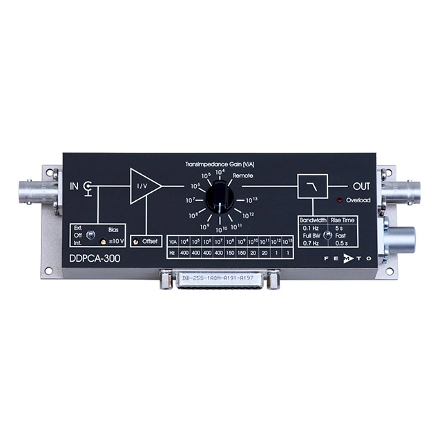 可調(diào)亞飛安放大器 DDPCA-300 是各種低噪聲跨阻放大器的新成員。非凡的設計實現(xiàn)了最低 0.2 fA/√Hz 和 0.4 fA 峰峰值的出色輸入噪聲值。