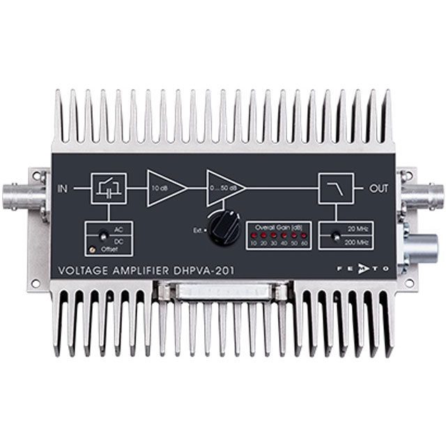 動態(tài)輸入電壓范圍:10 微伏至 300 毫伏FEMTO 選擇的多級放大概念避免了可編程衰減器或乘法增益級的缺點,其中動態(tài)范圍受限于主增益級的噪聲和漂移行為。因此,DHPVA 系列同樣適用于幅度為 100 μV 至 300 mV(70 dB 動態(tài))的輸入信號。由于出色的 DC 穩(wěn)定性,可以通過信號平均(平均)進一步提高動態(tài),因此可以使用 10 μV 至 300 mV(90 dB 動態(tài))的實際范圍。