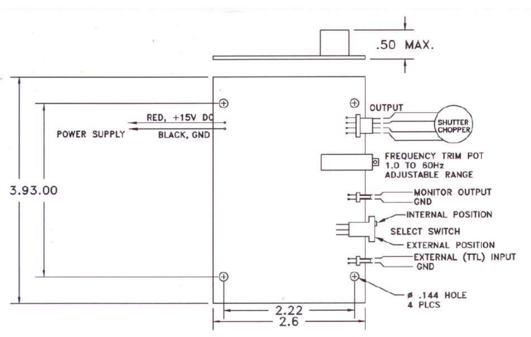 在內(nèi)部模式下,快門充當(dāng)可調(diào)節(jié)的低頻(0.5 至 50 Hz)光學(xué)斬波器。內(nèi)部振蕩器和多圈電位計(jì)控制激光快門葉片的位置。內(nèi)部振蕩器的最小頻率穩(wěn)定性為 0.1%。