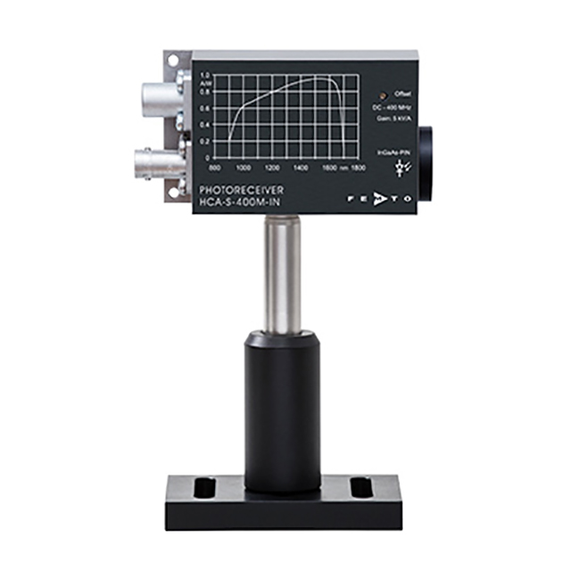 HCA-S-400M 光接收器系列將快速光電二極管與久經(jīng)考驗(yàn)的FEMTO HCA 電流放大器技術(shù)相結(jié)合。HCA-S-400M 可配備快速硅或 InGaAs 光電二極管,分別覆蓋 320 至 1000 nm 和 900 至 1700 nm 的光譜范圍。放大器跨阻抗為 5 x 103 V/A,導(dǎo)致InGaAs 模型在 1550 nm 時(shí)的最大轉(zhuǎn)換增益為 4.8 x 103 V/W,而 InGaAs 模型為 2.7 x 103帶有硅光電二極管的模型在 800 nm 時(shí)的 V/W。復(fù)雜的直流耦合多級放大器設(shè)計(jì)允許測量從直流到 400 MHz 的帶寬,對應(yīng)于 1 ns 的最小上升時(shí)間。由于采用低噪聲設(shè)計(jì),無需進(jìn)一步平均即可檢測到光功率在微瓦范圍內(nèi)的信號(hào)。提供具有自由空間或光纖輸入的不同型號(hào)。