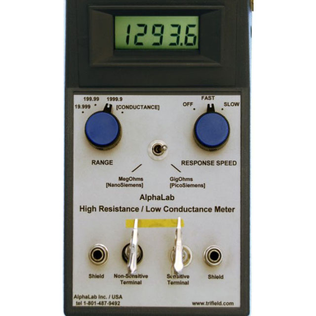 要進(jìn)行電阻測(cè)量,請(qǐng)將 RANGE 切換到1999.9,并將切換開(kāi)關(guān)切換到 GigOhms。如果幾秒鐘后,顯示器上下波動(dòng)明顯,切換響應(yīng)速度為慢。如果顯示器在最左邊顯示一個(gè)“1”,這意味著電阻大于1999.9千兆歐姆。(在這種情況下,只有電導(dǎo)將給出一個(gè)讀數(shù),將在后面描述)。但是,如果顯示器讀取一個(gè)數(shù)字(1999.9千兆歐姆或更少) ,這是正確的電阻。如果數(shù)字很小(或者為零) ,你可以把 RANGE 旋鈕從1999.9調(diào)到199.99或者19.999; 如果顯示的數(shù)字仍然很小,把切換開(kāi)關(guān)從 GigOhms 調(diào)到 MegOhms,然后再次查看1999.9,199.99,19.999的范圍,直到你看到一個(gè)足夠大的數(shù)字,可以按照你需要的分辨率讀取。如果您走得太遠(yuǎn),一個(gè)“1”將出現(xiàn)在顯示器的左側(cè),沒(méi)有其他數(shù)字將顯示,直到您切換范圍回來(lái)。