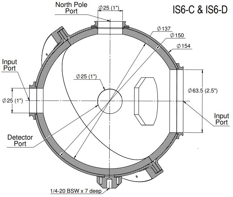 IS6-C 是一個 6” 積分球(內(nèi)部 5.3”),用于準(zhǔn)直 (C) 光束。它沒有檢測器,IS6-C 的檢測配置由用戶完成。也可作為均勻光源使用。