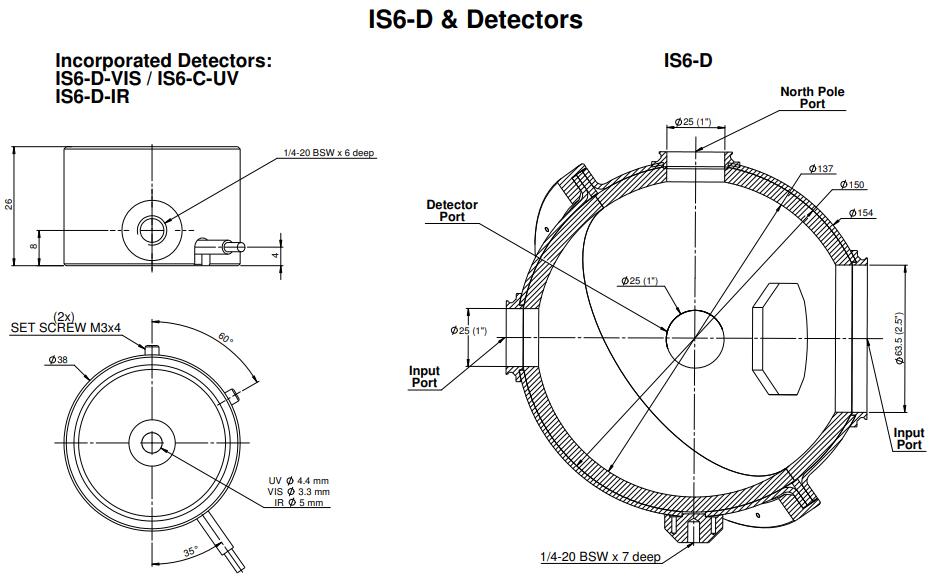 IS6-D-UV 是一個 6 英寸積分球(內部 5.3 英寸),帶有用于發(fā)散 (D) 光束的硅探測器。IS6-D-UV 配有紫外線檢測器,校準范圍為 200 至 1100nm,可測量高達 1W 的功率。