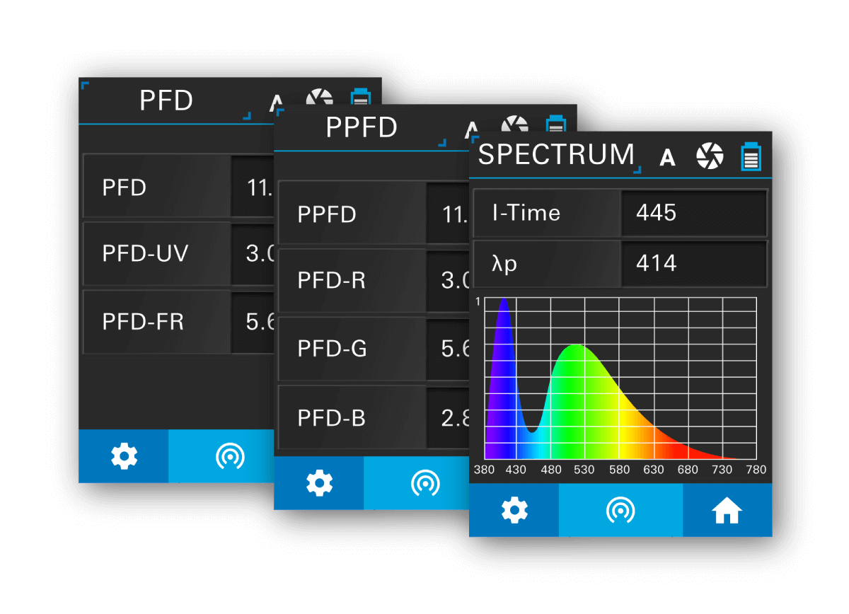 測(cè)量模式 | 測(cè)量模式:PPFD、PFD、頻譜(圖表)、記錄和網(wǎng)格 |