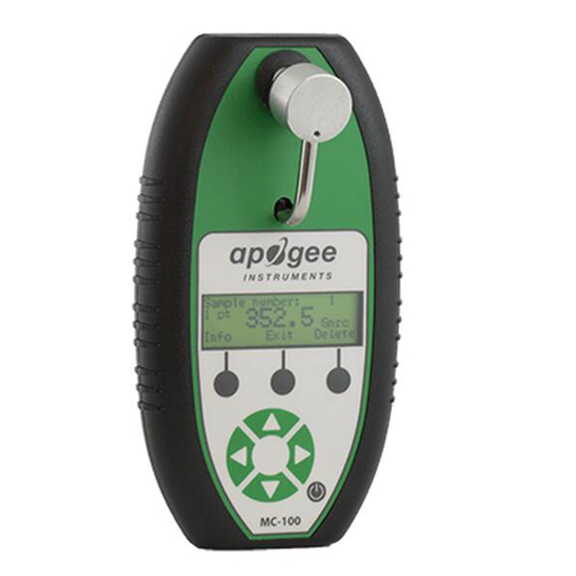 MC-100 可直接測量和顯示完整葉片樣品中的葉綠素濃度,而不會(huì)損壞植物材料。該儀表經(jīng)過校準(zhǔn)以測量葉綠素濃度,單位為 μmol 葉綠素/m2。出于參考和比較目的,儀表還輸出相關(guān)單位(CCI 或 SPAD)。