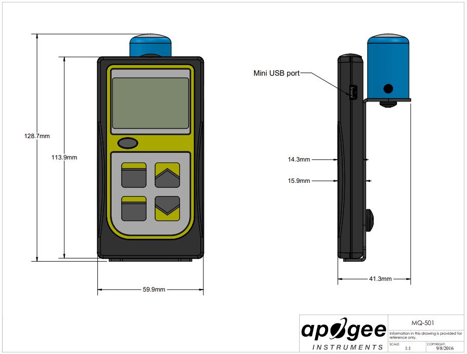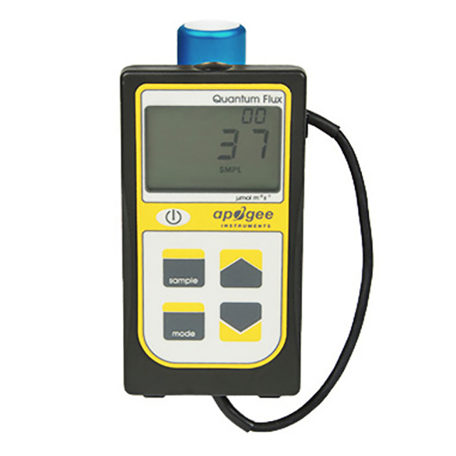 MQ-501 設(shè)計為易于使用的手持式儀表,用于抽查測量。該儀表包括 AM-001 儀表安裝支架,用于將傳感器安裝在儀表的水平面上,以及約 0.17 m 的電纜以容納支架長度。全光譜傳感器采用藍(lán)色增強型硅光電二極管和定制濾光片,具有堅固的自清潔傳感器外殼設(shè)計,陽極氧化鋁主體和丙烯酸漫射器。典型應(yīng)用包括室外環(huán)境、溫室和生長室中植物冠層的 PPFD 測量,以及相同環(huán)境中的反射或冠層下(透射)PPFD 測量。