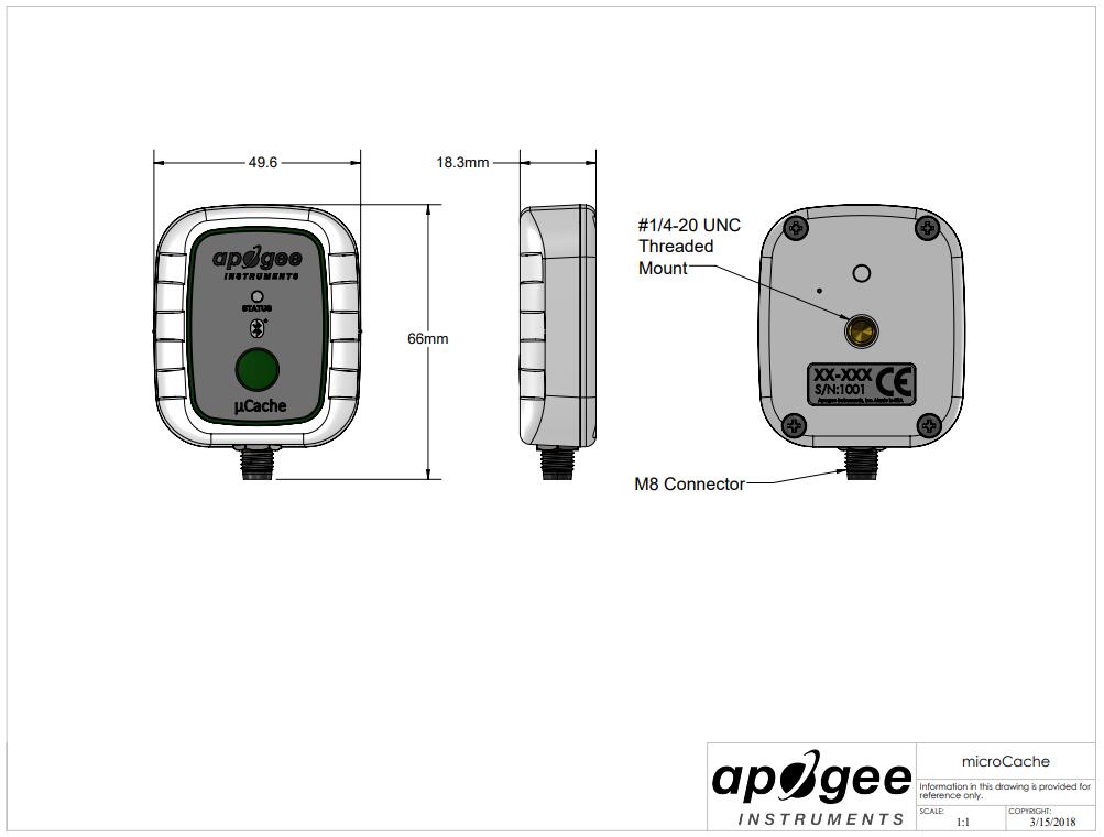 新的 AT-100 microCache (μCache) 微型記錄器是一款堅固耐用的獨立電池供電設備,可以收集超過 400,000 個數(shù)據(jù)點,并使用我們免費的 ApogeeConnect 應用程序通過藍牙將您的傳感器連接到您的 iOS 或 Android 設備。該應用程序允許您進行實時測量、設置自定義數(shù)據(jù)記錄間隔、監(jiān)控日光積分并繪制圖表、確保光周期、下載數(shù)據(jù)集等。
