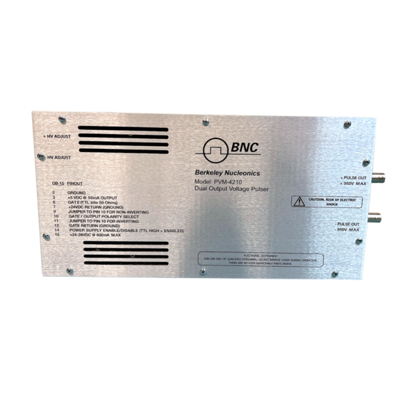 PVM-4210 脈沖發(fā)生器模塊提供兩個脈沖輸出通道,由通用控制邏輯控制。當控制邏輯接收到門信號時,兩個通道同時發(fā)出脈沖。一個通道從地脈沖到正高壓,另一個通道從地脈沖到負高壓。因此,每個輸出都可以連接到普克爾斯盒或 Q 開關的電極,或連接到一對偏轉板,從而在電池或板上提供 1,900 V 差分脈沖。