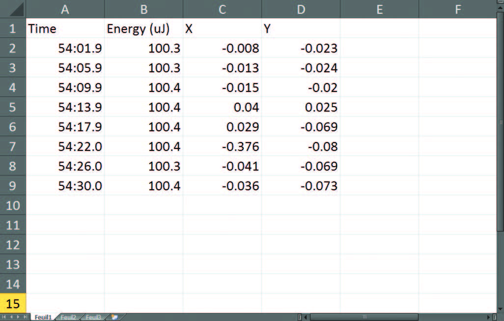 另一個非常實用的功能是“數(shù)據(jù)記錄”。通過這一功能,您可以設(shè)置 QUAD-4Track 以跟進激光在過去數(shù)分鐘、數(shù)小時甚至數(shù)天內(nèi)的位移、能量和/或功率。需要在激光器熱機時測量激光的“光束偏轉(zhuǎn)”嗎?使用數(shù)據(jù)記錄就行了!需要測量不同激光重復(fù)率或能量級對應(yīng)的光束位移嗎?數(shù)據(jù)記錄可以幫您測量!