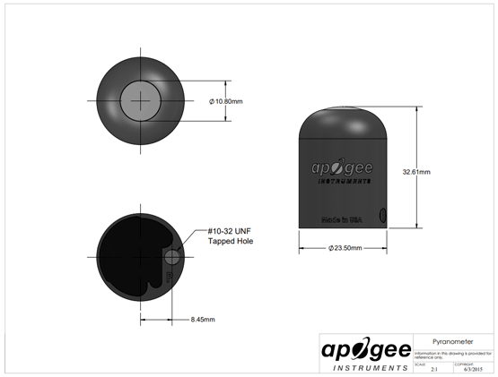 傳感器可以通過 USB 2.0 A 型插頭連接到臺式機(jī)或筆記本電腦,與 ApogeeConnect 軟件(Windows 兼容,XP 及更高版本;Mac 兼容,10.10 及更高版本)一起使用。隨附的 Apogee 軟件讓用戶可以控制數(shù)據(jù)記錄和校準(zhǔn)設(shè)置,提供實時輸出顯示和短波輻射測量圖,并允許將數(shù)據(jù)集保存為 csv 文件。