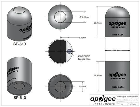 這些傳感器也可以與我們向下的日射強(qiáng)度計(jì)結(jié)合使用,形成反照率計(jì)。對于此應(yīng)用,我們推薦 Apogee SP-710-SS反照率計(jì)傳感器套件,其中包括一個(gè)SP-510-SS向上的總輻射表、一個(gè)SP-610-SS向下的總輻射表、一個(gè)AY-001差分分離器,以及AW-605-SS 5 米電纜。 要安裝到桅桿或直接安裝到太陽能電池板,我們建議使用 AL-130 反照率計(jì)安裝支架或 AM-500 凈輻射計(jì)安裝支架,搭配 帶 12" 桿的AM-130安裝夾具。
