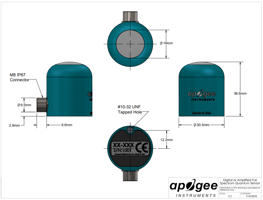 SQ-521 是一款采用 SDI-12 通信協(xié)議的數(shù)字傳感器。該傳感器采用堅(jiān)固耐用的自清潔傳感器外殼設(shè)計(jì)、帶丙烯酸擴(kuò)散器的陽(yáng)極氧化鋁主體以及采用預(yù)鍍錫尾纖引線的優(yōu)質(zhì)電纜端接,可輕松連接到數(shù)據(jù)記錄器和控制器。典型應(yīng)用包括室外環(huán)境、溫室和生長(zhǎng)室中植物冠層的 PPFD 測(cè)量,以及相同環(huán)境中的反射或冠層下(透射)PPFD 測(cè)量。量子傳感器還用于測(cè)量水生環(huán)境中的 PAR/PPFD,包括生長(zhǎng)珊瑚的鹽水水族館。