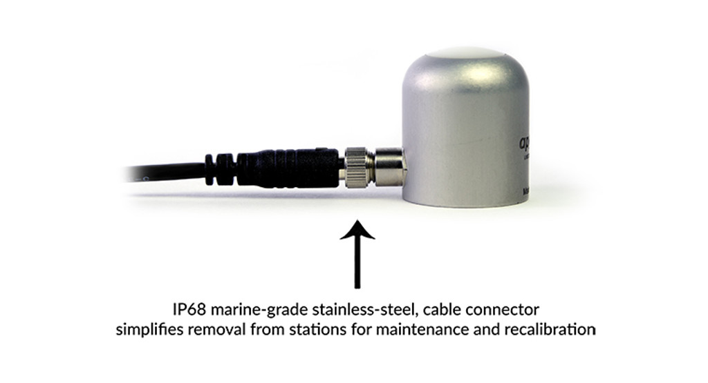 該傳感器的模擬版本 (SQ-640) 帶有內聯(lián)電纜連接器,距離傳感器頭 30 厘米,可作為長電纜尾纖傳感器標準使用,或通過擰下連接器與我們的 microCache 藍牙微型記錄器一起使用,丟棄較長的電纜,然后將傳感器擰到 microCache 上的配合連接器上。