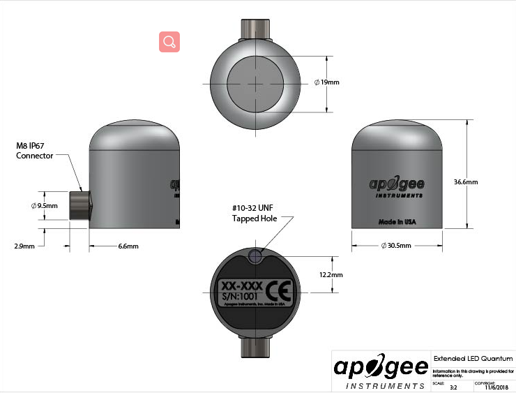 該傳感器的模擬版本 (SQ-640) 帶有內(nèi)聯(lián)電纜連接器,距離傳感器頭 30 厘米,可作為長電纜尾纖傳感器標(biāo)準(zhǔn)使用,或通過擰下連接器與我們的 microCache 藍(lán)牙微型記錄器一起使用,丟棄較長的電纜,然后將傳感器擰到 microCache 上的配合連接器上。