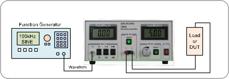 TS250波形放大器是一款獨特的儀器,非常適合放大函數(shù)發(fā)生器。它放大電流或電壓或功率以驅(qū)動重負(fù)載。TS250 提供 ±10V 至 +65V 八種電壓范圍可供選擇。TS250 低壓型號的輸出電流高達(dá) 5A 。如應(yīng)用部分所示,通過并聯(lián)連接兩個或多個 TS250 波形放大器可以實現(xiàn)更高的電流。