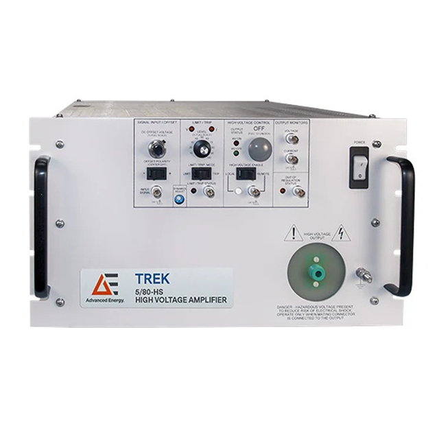 Trek 5/80-HS是一款用于工業(yè)和研究應(yīng)用的直流穩(wěn)定、高速、高壓功率放大器。它采用全固態(tài)設(shè)計(jì),可實(shí)現(xiàn)高轉(zhuǎn)換速率、寬帶寬和低噪聲操作。四象限有源輸出級(jí)在整個(gè)輸出電壓范圍內(nèi)向無(wú)功或電阻性負(fù)載吸收或提供電流。這種類型的輸出對(duì)于實(shí)現(xiàn)各種負(fù)載(如高電容性或無(wú)功負(fù)載)所需的精確輸出響應(yīng)和高轉(zhuǎn)換速率至關(guān)重要。它被配置為非反相放大器。