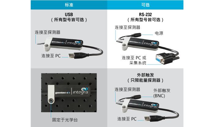 所有 integra 探測器皆提供以上選項:可選擇 ES-232 或 USB 輸出
