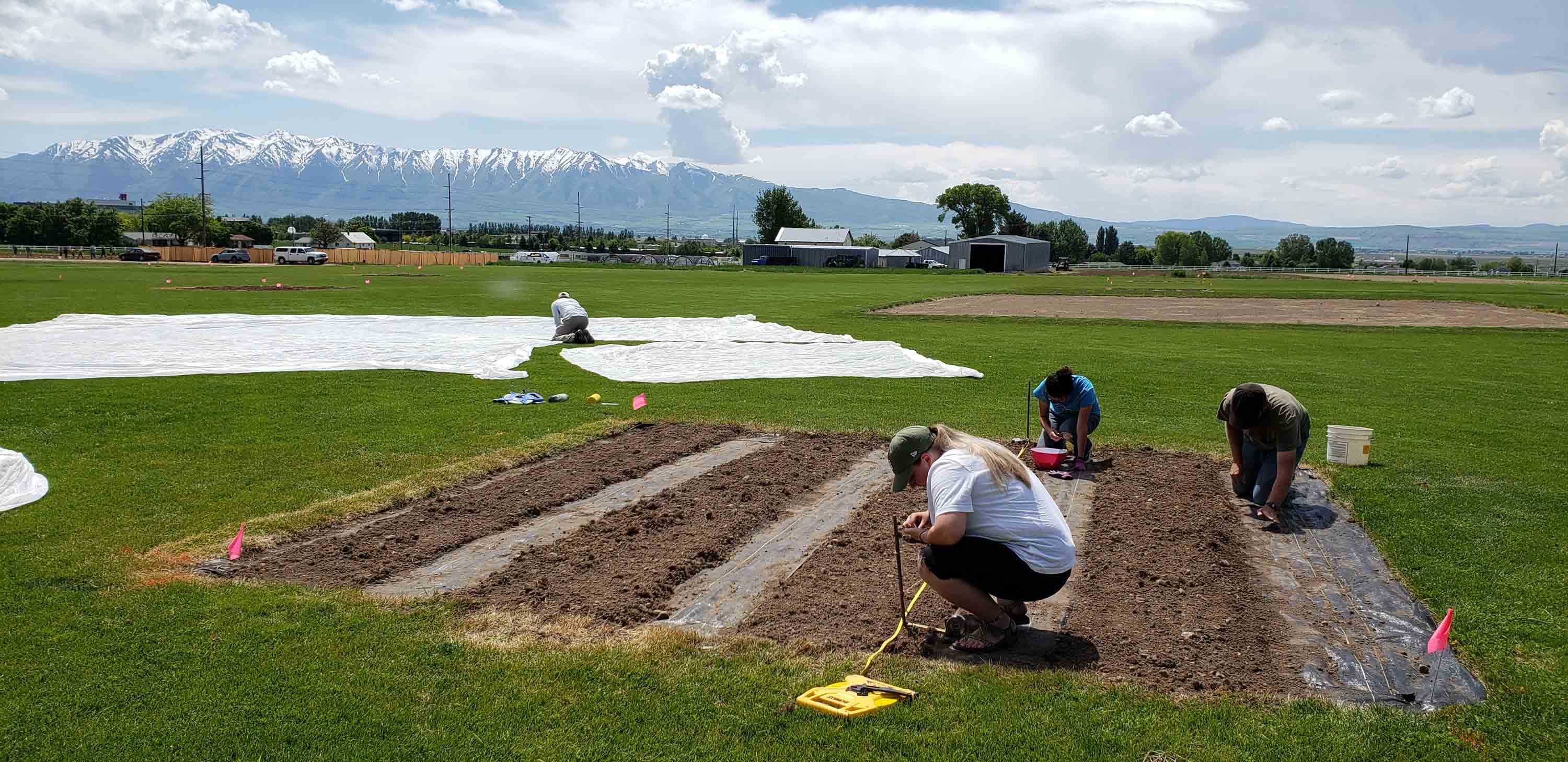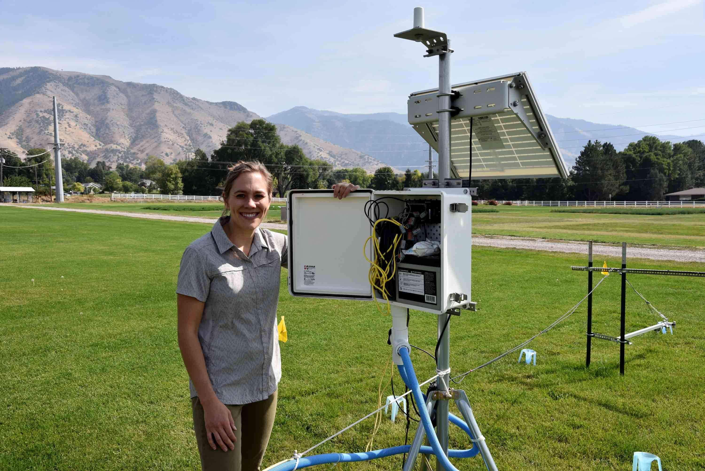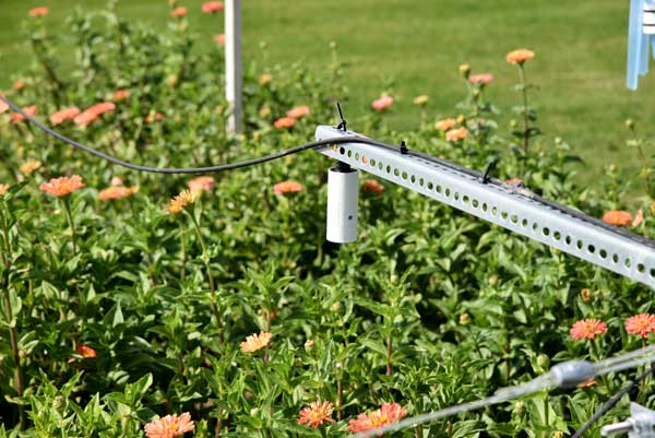 To accomplish this, six identical plots of turfgrass and six plots of zinnia cut flowers (a popular and representative urban garden crop) were established, assigned irrigation timing treatments, and heavily instrumented to measure a water-energy balance. Apogee sensors used include Infrared Radiometers (SI-411-SS) to measure surface and canopy temperatures and Net Radiometers (SN-500-SS) to measure the four components of radiation and calculate albedo. The plots were also equipped with air temperature and humidity sensors, soil moisture and temperature sensors, irrigation flow meters, and catch cups, while the field is home to a weather station managed by the USU Climate Center. In all, 329 measurements are automated every 15 minutes at the site, while 162 measurements are collected by hand three times a week. This study makes use of the SDI-12 digital output, one of the most significant advances in sensor technology that allows for minimal datalogging equipment.