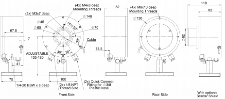 Backscattered Power | ~3.5% without Scatter Shield, ~1% with Scatter Shield |