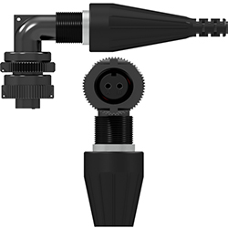 2 Socket MIL-Style, Right Angle, Nylon Molded Connector, Permanent Mount, 250 °F (121 °C) Max Temp