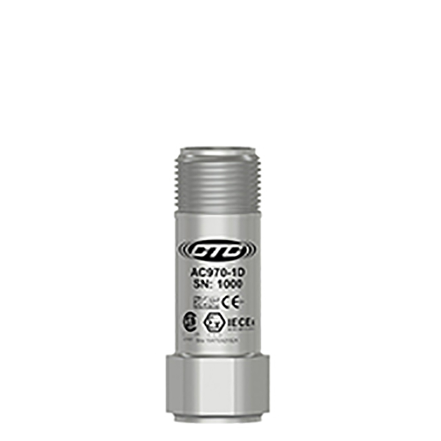 Low Capacitance, Intrinsically Safe IEC Certified (IECEx / ANZEx / PESO / KC / EAC) Accelerometer, Top Exit 2 Pin Connector, 100 mV/g, ±10%