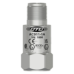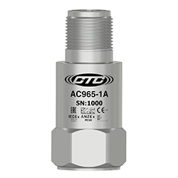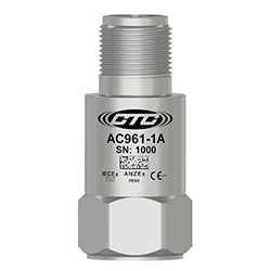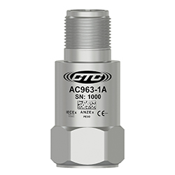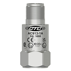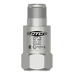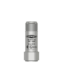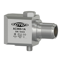 Miniature Industrial Intrinsically Safe Accelerometer, Top Exit 2 Pin Mini-MIL Connector, 100 mV/g, ±10%