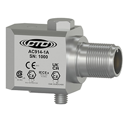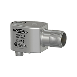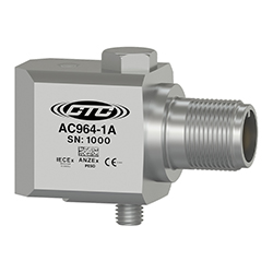 Low Capacitance, Intrinsically Safe Dual Output Accelerometer, Acceleration and Temperature, Top Exit 3 Pin Connector, 100 mV/g, 10 mV/°C, ±10%