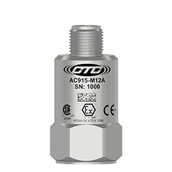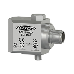 Low Capacitance, Intrinsically Safe Accelerometer, Top Exit 4 Pin M12 Pin Connector, 100 mV/g, ±10%