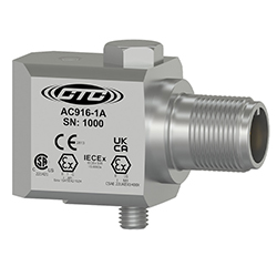 Miniature Industrial Intrinsically Safe Accelerometer, Side Exit 2 Pin Mini-MIL Connector, 100 mV/g, ±10%
