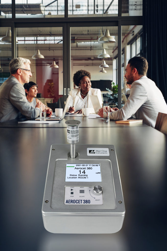 THE MET ONE INSTRUMENTS, INC AEROCET 380 IS A NEPHELOMETER THAT OFFERS REAL-TIME AIRBORNE TSP (TOTAL SUSPENDED PARTICULATE) CONCENTRATION LEVELS USING THE PRINCIPLE OF FORWARD-LASER LIGHT SCATTER. THIS INSTRUMENT IS IDEAL FOR SAMPLING IN ANY INDOOR WORKPLACE OR PUBLIC PLACE ENVIRONMENT WITH OPTIONAL SEPARATORS TO MONITOR PM1, PM2.5, OR PM10.