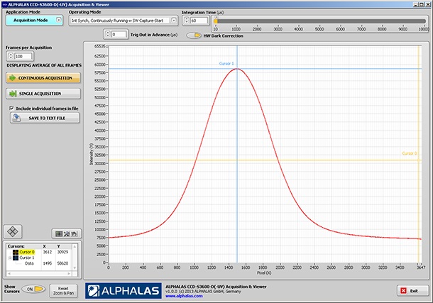 The high-sensitivity linear CCD sensor array contains 3648 active pixels and covers a wide spectral range. The sensor is controlled by complex fully FPGA-driven hardware. Other high-end components like 16-bit ADC, 32 MB DDR2 RAM & Hi-Speed USB assure high precision, large data storage & high speed. Highlights include high frame rates with no missing frames, precise control over parameters (e.g. integration time), trigger in & out, multiple operating modes and a unique data streaming mode.