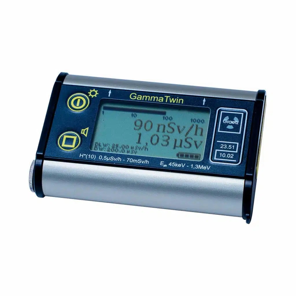 Compact electronic dose rate meter with a “twin display” that shows dose rate and dose simultaneously. The dose rate meter GRAETZ GammaTwin is PTB type-tested and therefore calibratable.