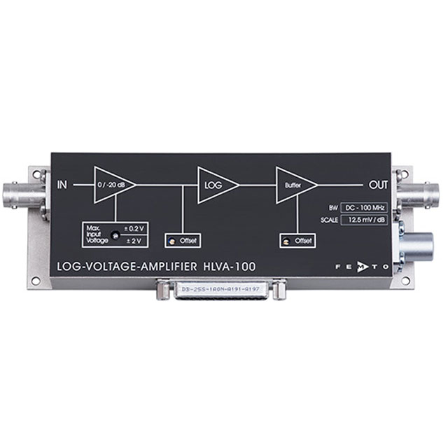 • Description: HLVA-100 logarithmic voltage amplifier, FemTo HLVA-100 voltage amplifier has a wide dynamic range of up to 80 dB. With a DC coupled input and a rise and fall time of only 5 ns, HLVA-100 is well suited