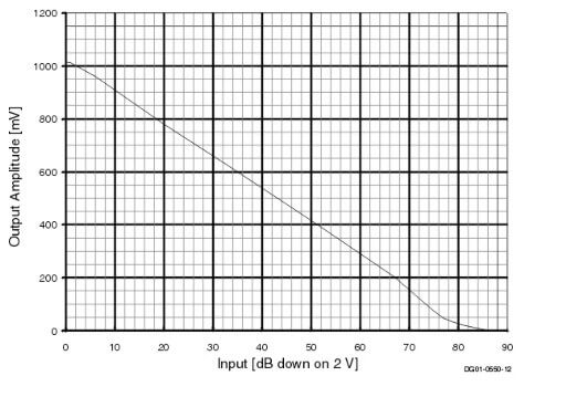 Scaling 12.5 mV/dB, 250 mV/decade (@ 50 Ω load)