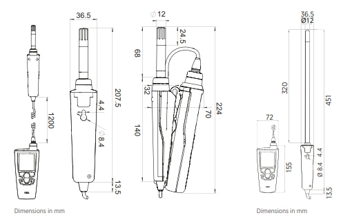 Temperature measuring range -40... +100 °C (-40... +212 °F), depending on the probe model. HM46 can measure temperatures up to +180 °C (+356 °F) for short periods of time.