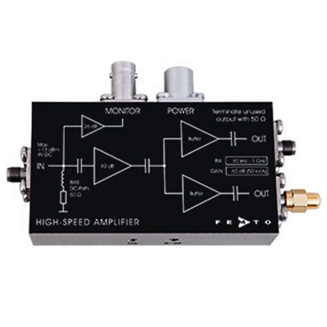 • Description: HSA high speed amplifiers provide a well-balanced combination of 10 KHZ to 2.5 GHZ bandwidth, high gain, low noise, and ultra-wide bandwidth, making them ideal for time-resolved measurements, such as