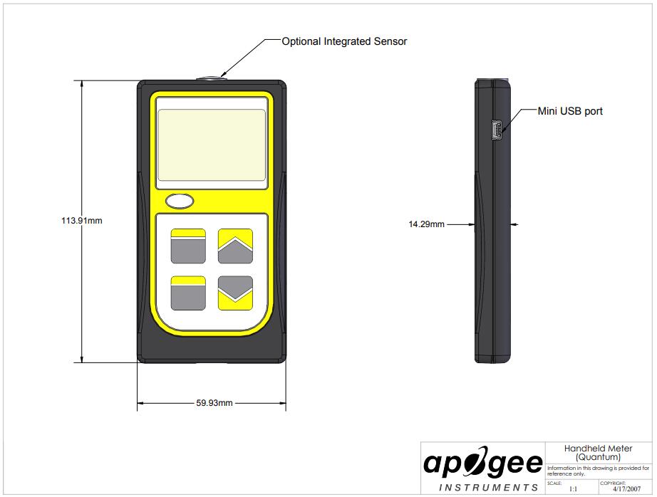 Robust and easy to use: Quantum sensor heads are made of machined aluminum and encapsulated with epoxy resin, which can be used for many years in harsh environments, including underwater. The hand-held instrument is connected by cable and can display real-time readings, record samples, and record average intensity and daylight integration (DLI) measurements. Unlike the sensor head, the hand-held instrument is not waterproof.