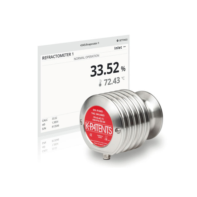 Sanitary probe type refractometer PR-43-AP Suitable for installation on large pipelines, storage tanks, digesters, moulders and can withstand high temperatures up to 150°C (300 °F). The refractometer is mounted on the pipe or container through a 2.5 "or 4" sanitary grade clamp.