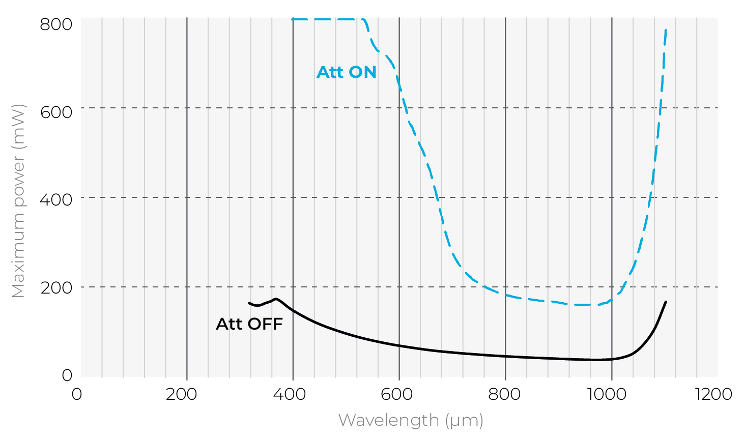 Just slide the OD1 integrated filter to the "on" position and you can measure up to 800 mW of continuous power.
