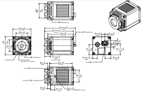 Active Area 9.6mm x 7.6mm