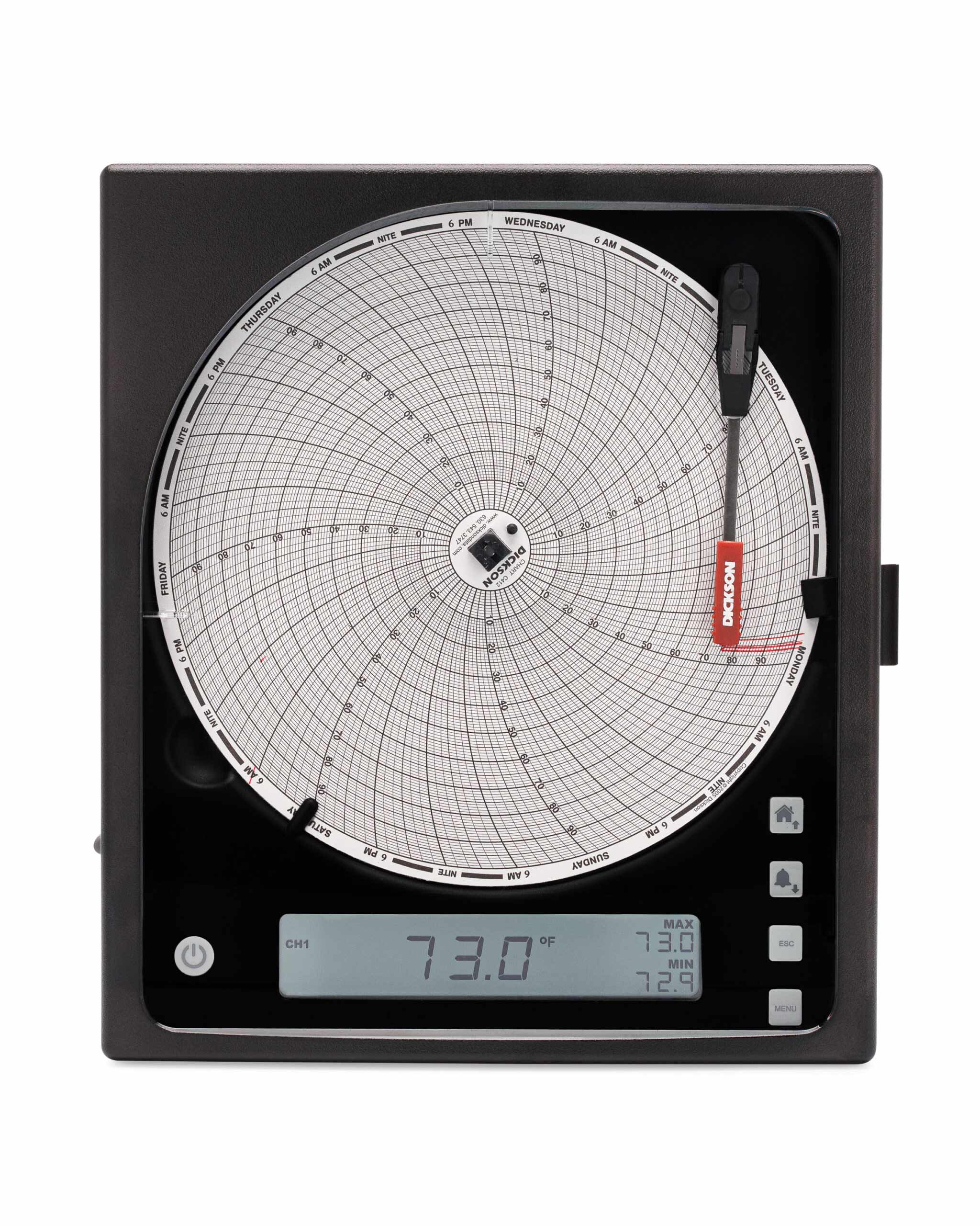 8″ (203mm) Chart Recorders offer the largest resolution out of any chart recorders. Now featuring Replaceable Sensors?, calibrating your chart recorder is easier than ever. All chart recorders feature a large 8″ chart and user-selectable recording timeframes (1-day, 1-week) and ranges.