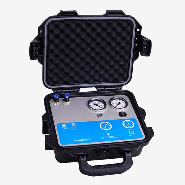This affordable portable vacuum has a rugged case and uses a powerful pump and rechargeable battery, which make it easy to collect pore water samples at remote locations. Evacuate your sampling bottle down to approximately 50 kPa. If the soil water tension is lower than 50 kPa, soil water solution will be extracted until vacuum and soil water tension are equalized. When the samples are collected, the bottle is evacuated again. NOTE: The limits of this method include discontinuous and undefined sampling.