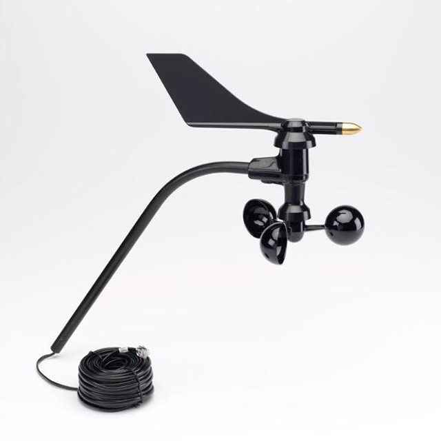 To display wind direction and wind speed, add our precision-crafted Anemometer. Includes both wind speed and wind direction sensors. Rugged components stand up to hurricane-force winds, yet are sensitive to the lightest breeze. Vane is hand-balanced for optimal stability and accuracy. Sealed stainless steel ball bearings for long life. Comes complete with 40′ (12 m) standard cable and the hardware needed to mount it on a pipe, wooden post, antenna mast, or similar structure.