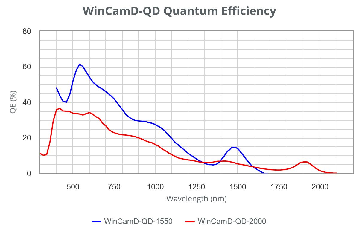 The WinCamD-QD series uses colloidal quantum dot sensors to provide high quality beam profiling for visible, SWIR, and eSWIR sources. With 15 μm pixels and a wavelength range as wide as 350 to 2000 nm the WinCamD-QD series offers unparalleled beam profiling capabilities. With a signal-to-noise ratio that exceeds 2100:1, the WinCamD-QD series is capable of ISO 11146 compliant beam measurements. The state-of-the-art colloidal quantum dot sensor features very high sensitivity with a global shutter for pulsed beam profiling.