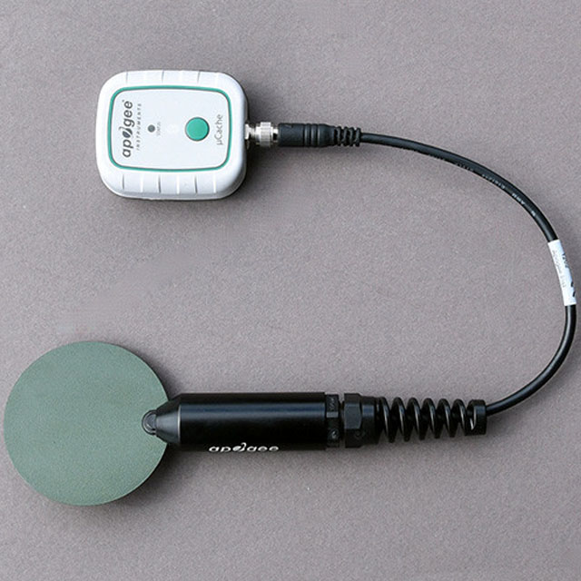 The AT-100 microCache (μCache) micro-logger is a rugged, standalone, battery-powered device that can collect over 400,000 data points. The microCache connects your sensor to your iOS or Android device via Bluetooth using our free ApogeeConnect app. The app allows you to make real-time measurements, set custom datalogging intervals, monitor and graph daily lights integrals, measure photoperiods, download datasets, and more.